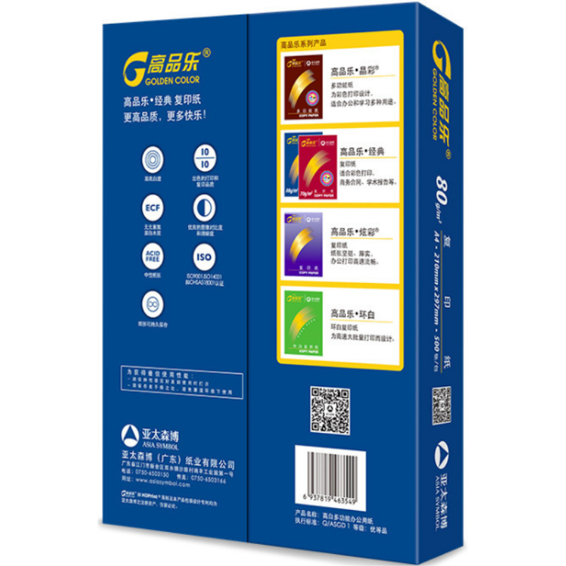 Golden color/高品樂A4 復(fù)印紙 80g 500張/包 2500張/箱