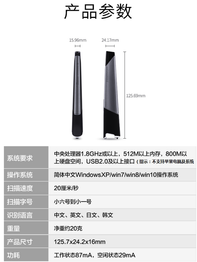 商品名稱(chēng):漢王(Hanvon)V587 掃描儀  掃描筆錄入筆錯(cuò)題掃描筆通用文字識(shí)別高速手持便攜式掃描儀