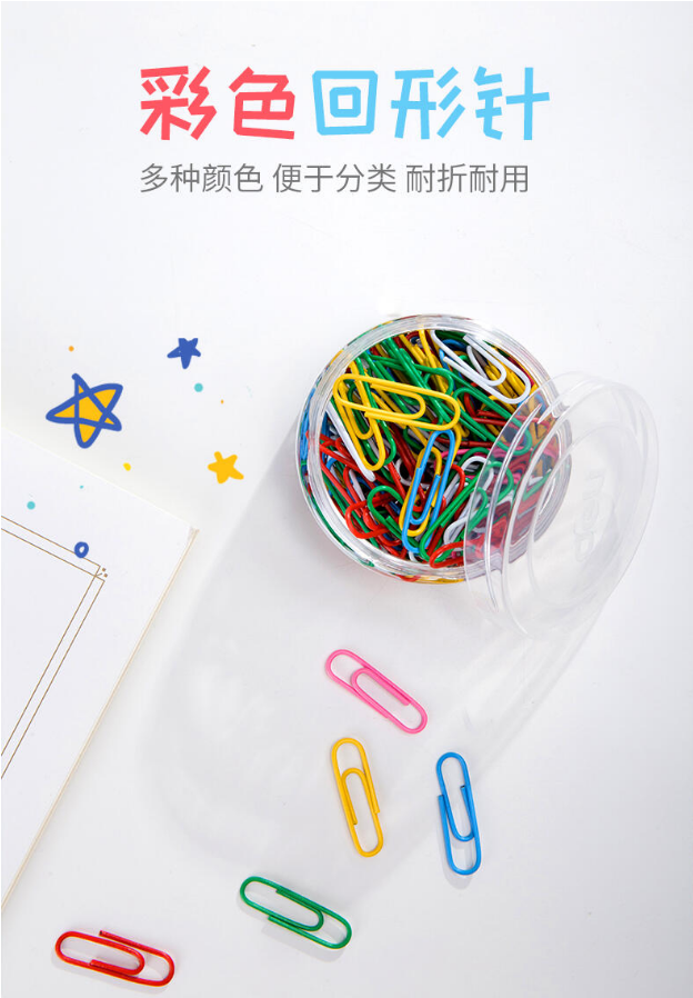 商品名稱:得力(deli)彩色回形針大號3號29mm/盒 曲別針收納盒財務裝訂辦公用品得力(deli)曲別針0038