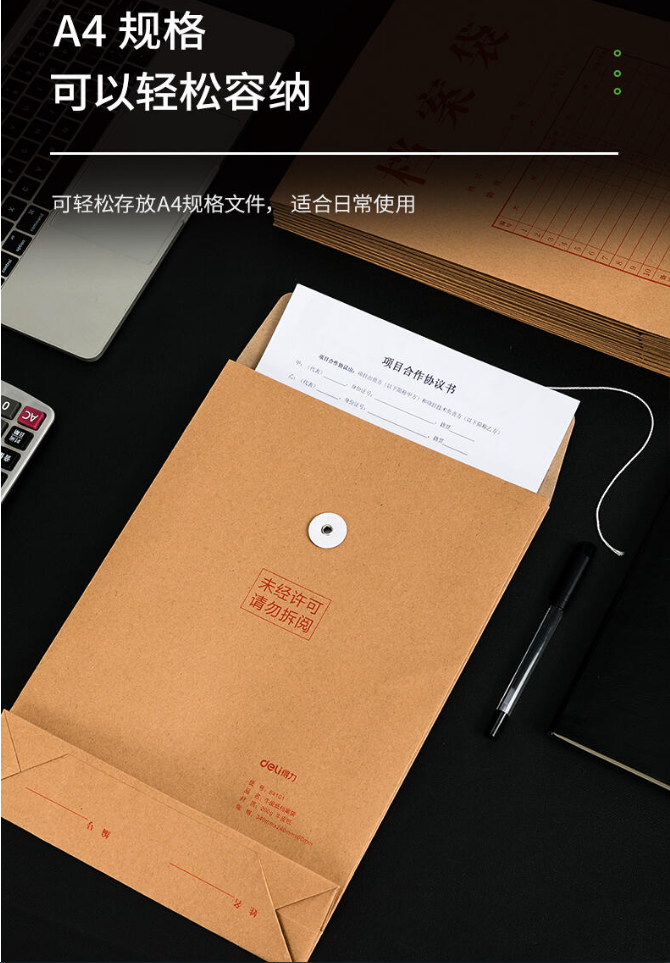 得力(deli)10只A4混漿牛皮紙檔案袋200g側(cè)寬6cm辦公文件資料袋票據(jù)收納袋 得力(deli)檔案袋64101