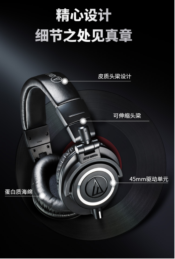 商品名稱:鐵三角(Audio-technica)ATH-M50x頭戴式專業(yè)全封閉監(jiān)聽音樂HIFI耳機 錄音監(jiān)聽耳機 鐵三角(Audio-technica)耳機 黑色