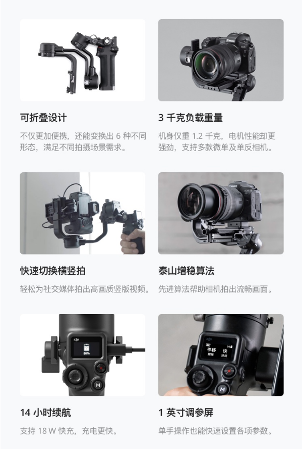 商品名稱:大疆(DJI) RSC2 如影 單手持微單穩(wěn)定器 專業(yè)防抖 云臺(tái)穩(wěn)定器 拍攝穩(wěn) 大疆DJIRSC2