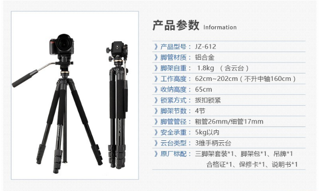 商品名稱:沃爾夫岡(WOLFGANG) 三腳架套裝 適用單反相機微單相機等沃爾夫岡JZ-612