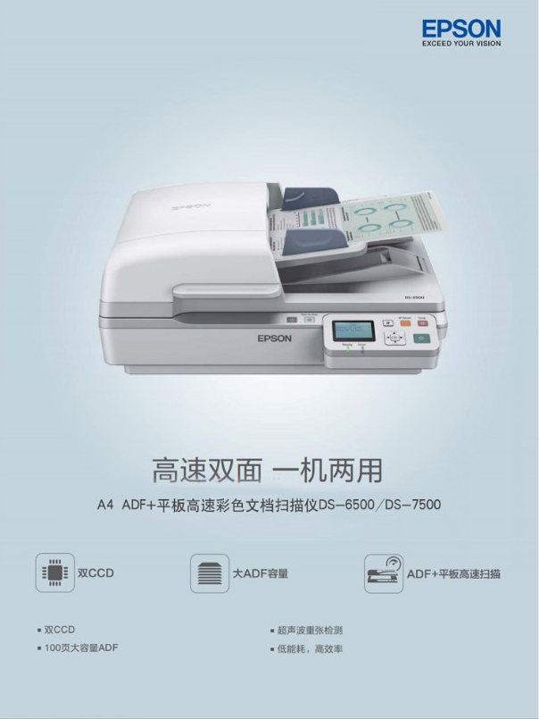 愛普生(EPSON)掃描儀 DS-6500自動連續(xù)平板+饋紙式雙面A4文檔高速