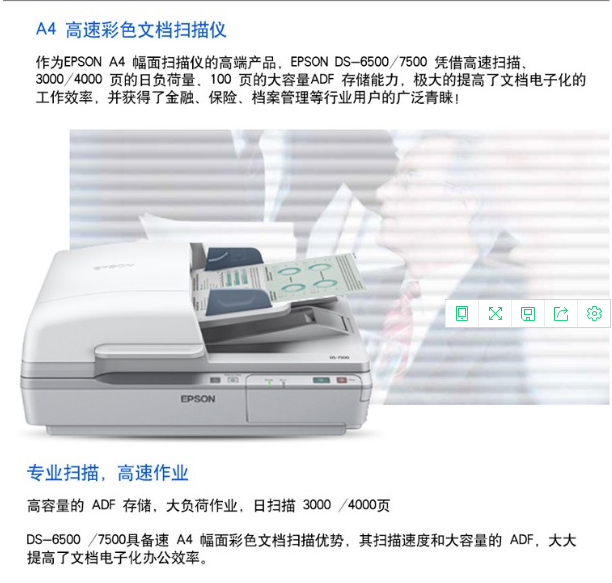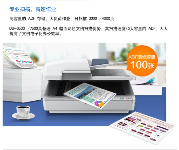 商品名稱:愛普生(EPSON)掃描儀  DS-6500自動連續(xù)平板+饋紙式雙面A4文檔高速